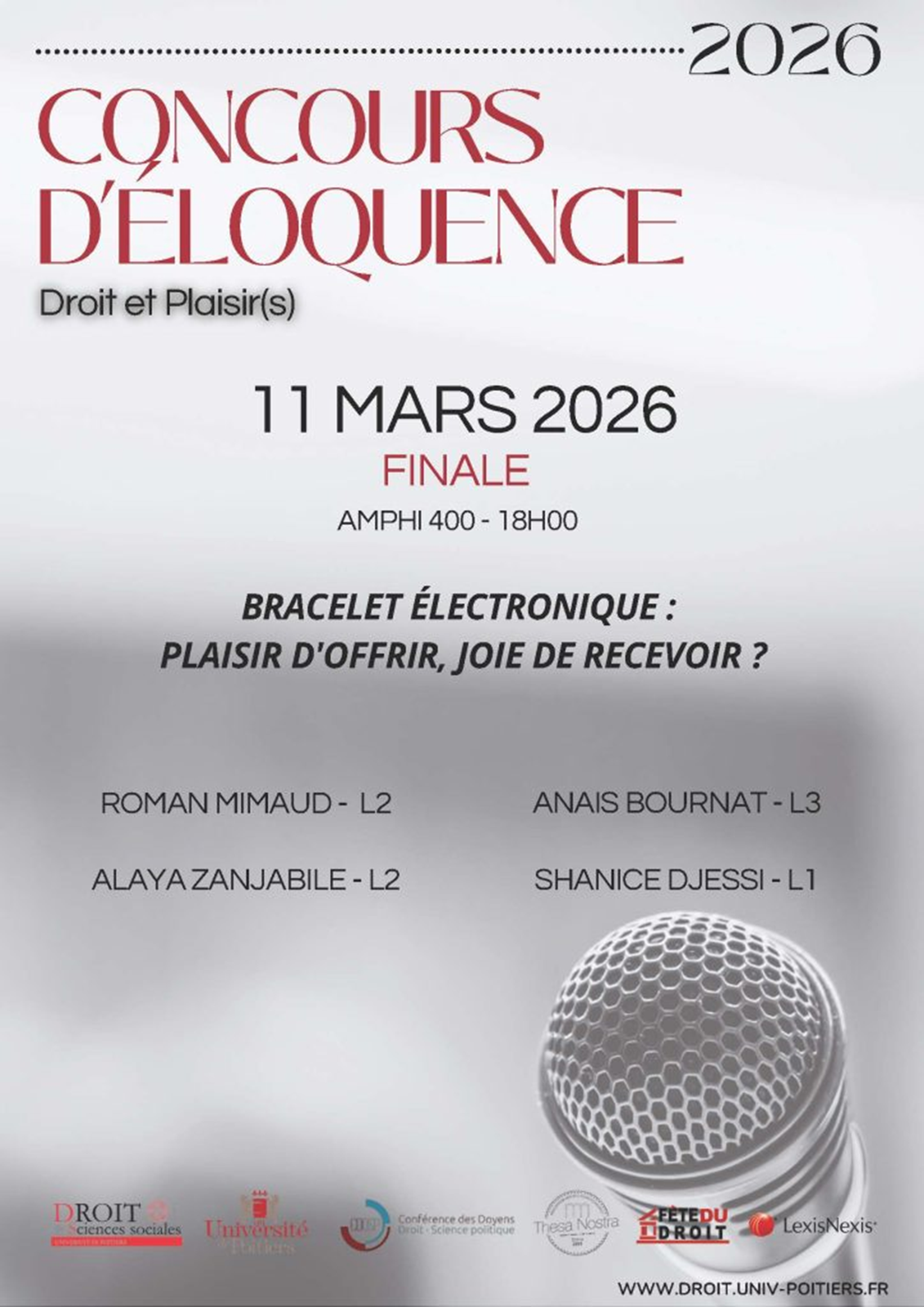 Aujourd’hui en deuxième année de droit, elle poursuit son parcours avec détermination et participe à un concours d’éloquence, dont la finale s’est tenue le 11 mars dernier à l’université de Poitiers, où elle affirme une parole sensible et maîtrisée.